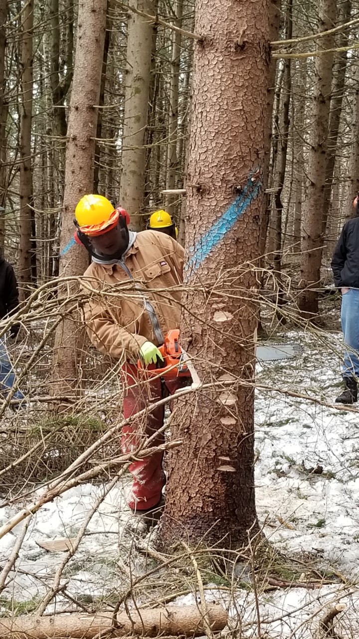 The full GOL course consists of four days and levels of instruction. Since a full day is needed for each class level, we usually offer GOL as a combo weekend of Levels 1/2 or Levels 3/4.  This past weekend we hosted levels 1 /2 , easily the the most popular. These levels cover an overview of chain saw safety and basic tree felling practice and includes basic saw maintenance and sharpening techniques. Take a look at the gallery to see this weekend’s participants learning with Dave in our red pine plantation.
