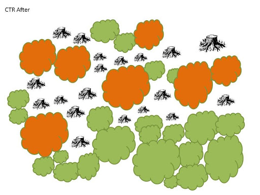 Projects like this are considered “pre-commercial” forestry, meaning that there is no immediate income from forest products. All the trees that are cut are left on the ground, or sometimes harvested for firewood. Pre-commercial work requires an input of time and labor, and NorthWoods was able to partially fund this work with a cost-share from the USDA Natural Resources Conservation Service (NRCS) Environmental Quality Incentives Program (EQIP). This NRCS cost share, as well as several other programs, are available to most private landowners.