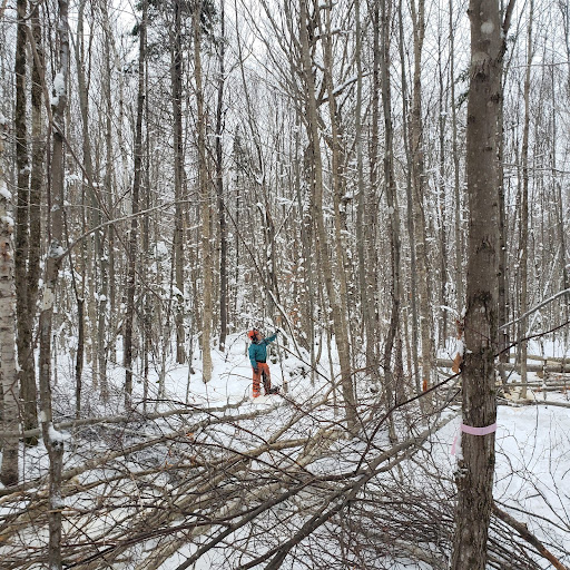 Want to learn more? NorthWoods crews and consulting foresters can work with you to do pre-commercial thinning or similar projects on your land. You can also check out this site in the NorthWoods Demonstration Forest, located along the Neighborly Way trail. Please note that this trail is relatively new, ungroomed, and may be difficult to navigate.