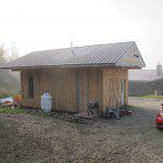 The building layout, while on the same foundation, has completely changed—about 40% of the footprint will be a new, heated workshop for Terry, our Head of Maintenance. Building quality is also improved with better insulation, a better roof, and nice aesthetics. The building overhangs are designed to emulate the overhangs built into forest homes in Germany to store firewood (see photo). NorthWoods will also be palletizing the firewood to allow a more efficient way to store and move the firewood.