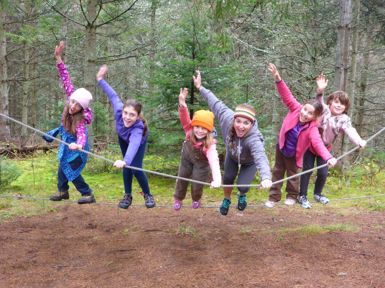 Challenge course participants develop a sense of teamwork with their peers, conquer physical and emotional challenges, and exceed their personal expectations. The course is a configuration of activities set in our red-pine forest that begin with trust falls and spotting, leading to a wood-and-cable maze that challenges participants both as individuals and as members of a group.