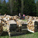- Bucking logs to firewood length.