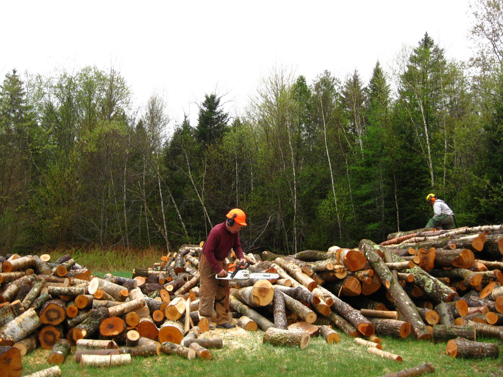 - Bucking logs to firewood length.